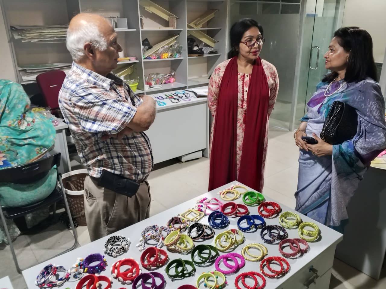 তাঁরা আমাদের চলমান ইনক্লুসিভ স্কিল ডেভেলপমেন্ট কার্যক্রম ঘুরে দেখেন এবং বিশেষ চাহিদাসম্পন্ন তরুণ-তরুণী ও তাদের মা’দের তৈরি হস্তনির্মিত জুয়েলারি ও সৃজনশীল কাজ প্রত্যক্ষ করে গভীরভাবে অনুপ্রাণিত হন।