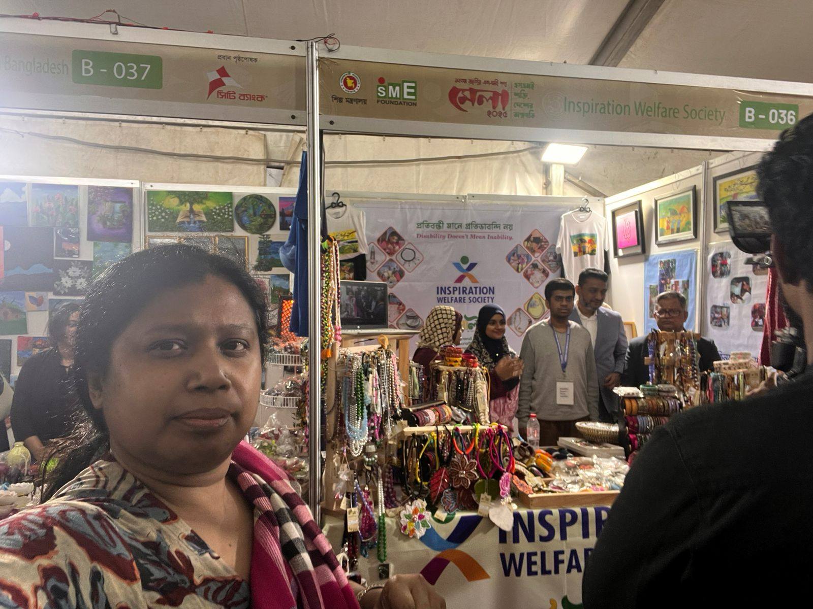 ১২তম জাতীয় এসএমই পণ্যমেলা ২০২৫-এ ইন্সপিরেশন ওয়েলফেয়ার সোসাইটির স্টল বি-০৩৬ পরিদর্শনে এসএমই ফাউন্ডেশন প্রতিনিধিবৃন্দ